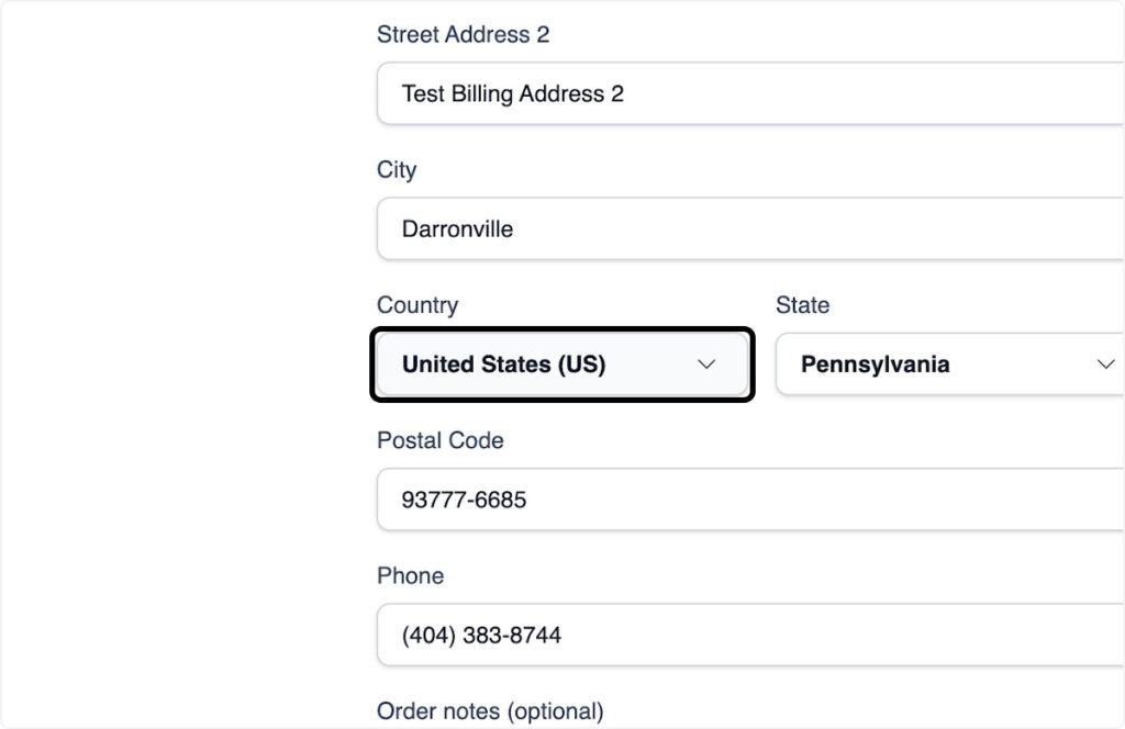 Note that these billing details are not verified by any payment gateway, as the test payment gateways will accept any billing details. Additionally, selecting a country where you do not sell in WooCommerce will cause the test to fail, as users cannot choose that billing country. Similarly, selecting a country where you do not allow shipping or where no shipping methods are set up in WooCommerce will also cause the test to fail. Furthermore, if you have any address validation plugins, please ensure you use a real address so the validation passes and the test does not fail.