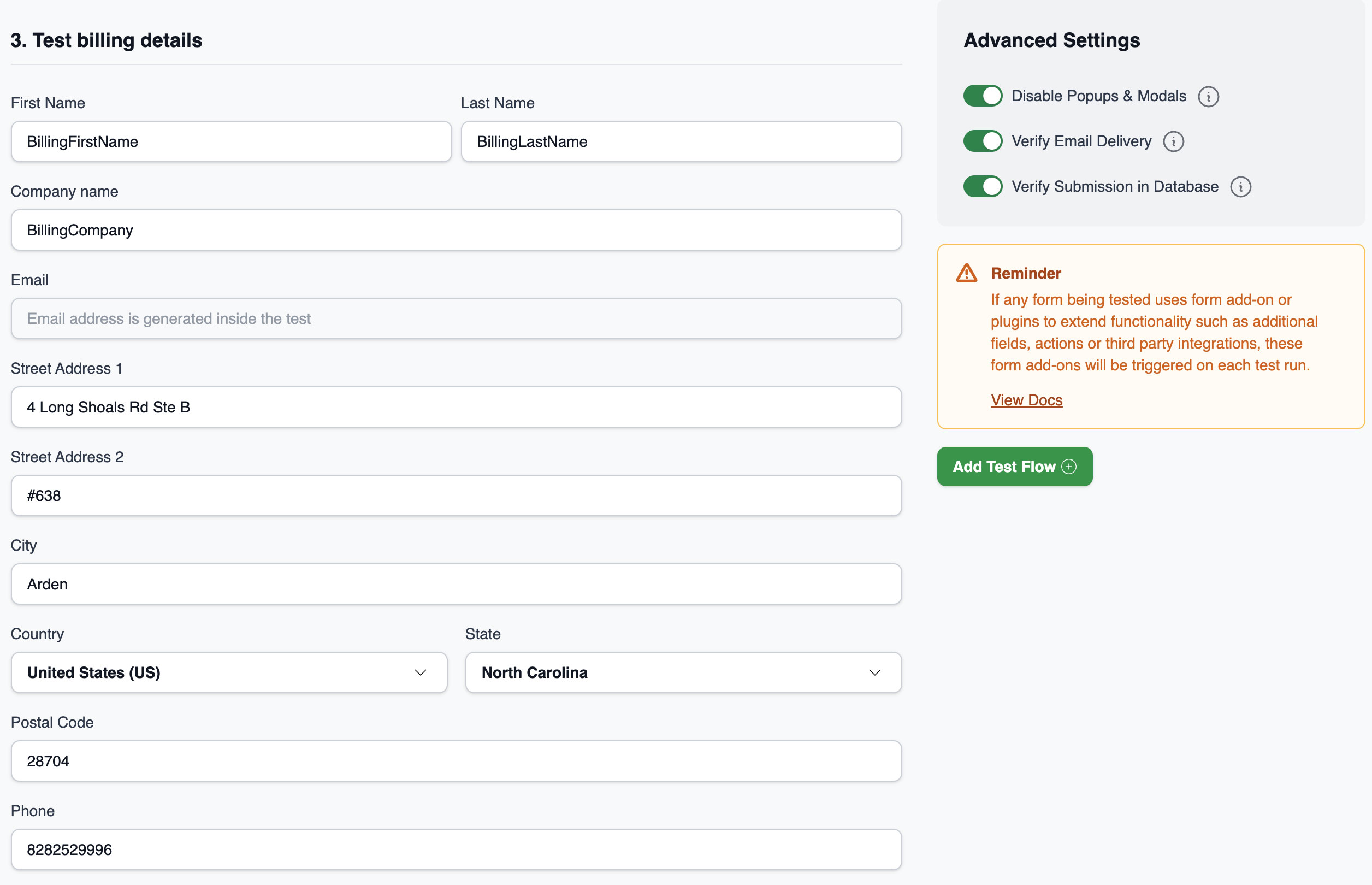 If you’d like to use different shipping information, CheckView will auto-fill test data similar to the billing details.