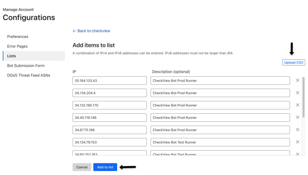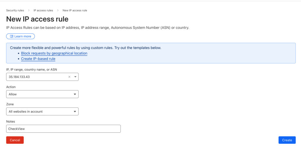 Repeat this, creating an IP access rule for each IP in this link.
