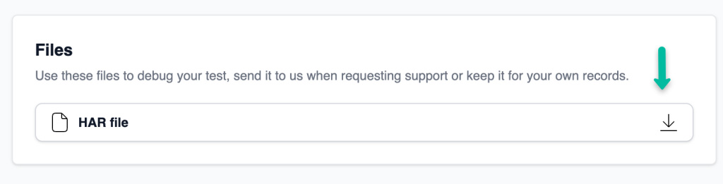 Pro Tip: When sending a HAR file to support, include additional details such as the Test ID, a description of the issue, and any relevant steps taken during troubleshooting.